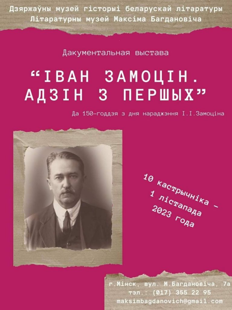 З 10 кастрычніка па 1 лістапада ў Літаратурным музеі Максіма Багдановіча праходзіць дакументальная выстава “ІВАН ЗАМОЦІН. АДЗІН З ПЕРШЫХ”.