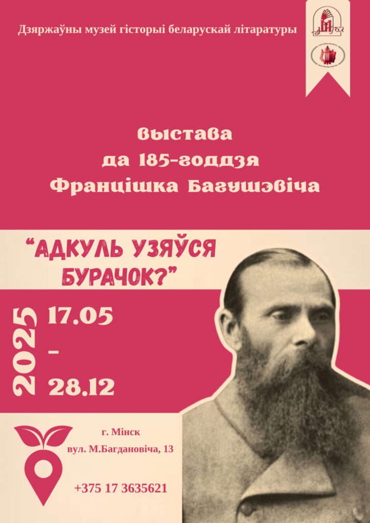 Ад 17 траўня ў Дзяржаўным музеі гісторыі беларускай літаратуры працуе выстава “Адкуль узяўся Бурачок?”, прысвечаная 185-годдзю Францішка Багушэвіча, аднаго з пачынальнікаў новай айчыннай літаратуры.