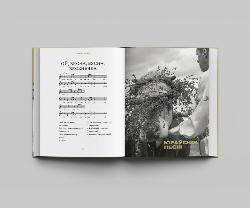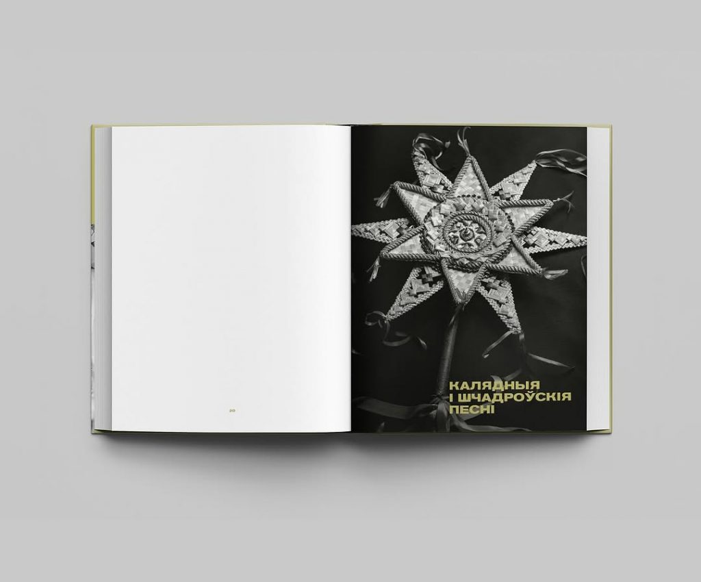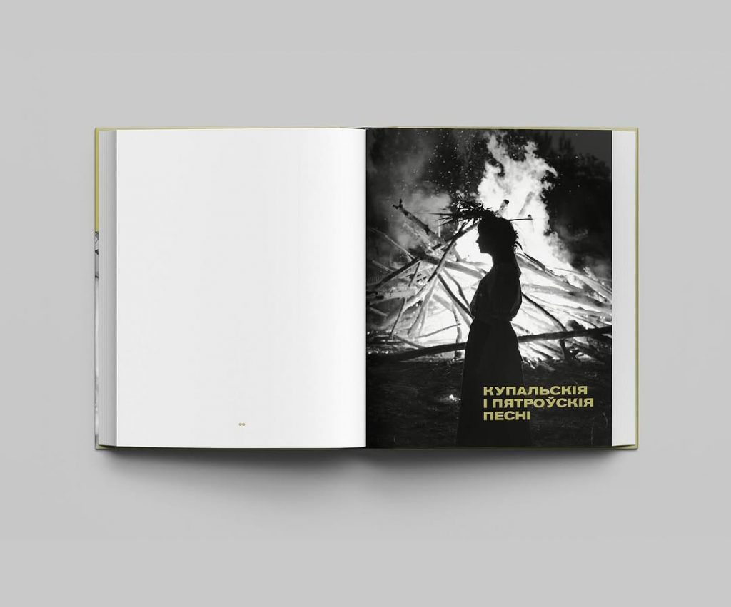 “Мне хацелася ў афармленні з аднаго боку паказаць багацце народнай культуры, з іншага — вывесці за межы часу і гісторыі адчуванне кола абрадаў і свят. Паказаць адначасовую сучаснасць і пазачасавасць, пранікненне традыцый і сувязь з імі ў нашым жыцці. Сама прырода паказвае нам, што мы бліжэй да продкаў, чым мы самі сабе ўяўляем. Таму былі абраныя чорна-белыя фотаздымкі, на якіх не будзе моцна зразумела ні хто на іх, ні час, але якія дазваляюць перадаць тое самае адчуванне часу ў прыродзе, яго змены і пераходнага стану”, — падзялілася мастачка Кася Сырамалот падыходам, які скарыстала для афармлення кнігі.