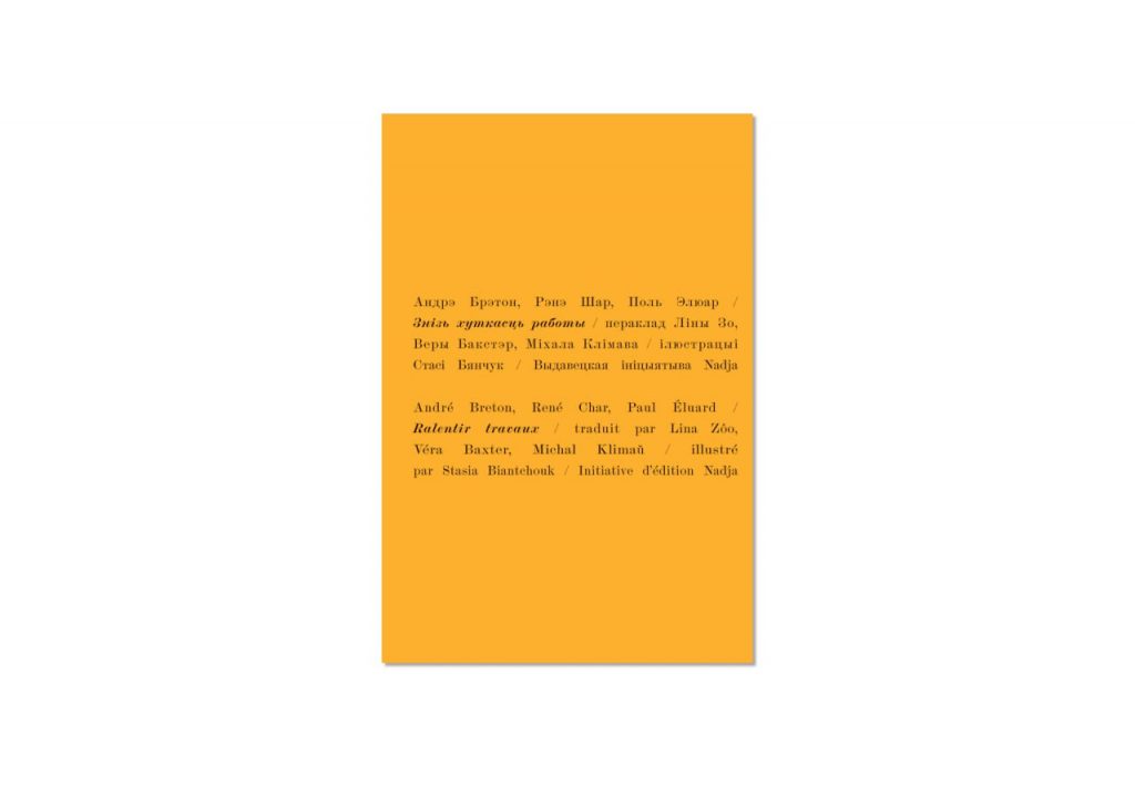 Выдавецкая ініцыятыва “Nadja / Надзя” апублівакала па-беларуску калектыўны зборнік трох сцяганосцаў сюррэалізму — “Знізь хуткасць работы” Андрэ Брэтона, Рэнэ Шара, Поля Элюара.
