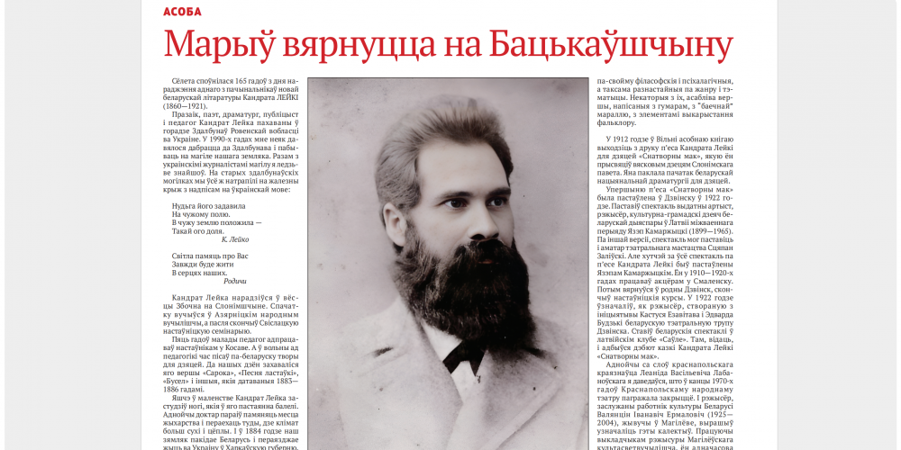 АСОБА: Сяргей ЧЫГРЫН — пра аднаго з пачынальнікаў новай беларускай літаратуры Кандрата ЛЕЙКУ