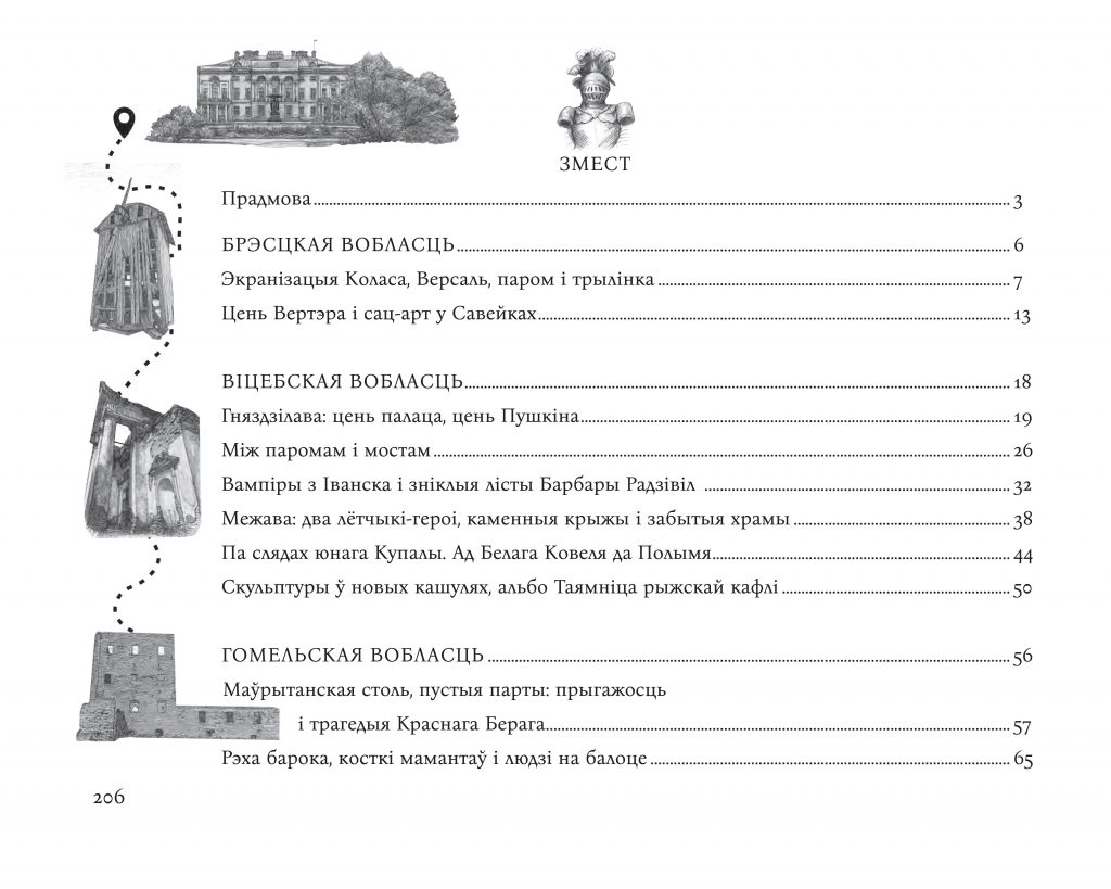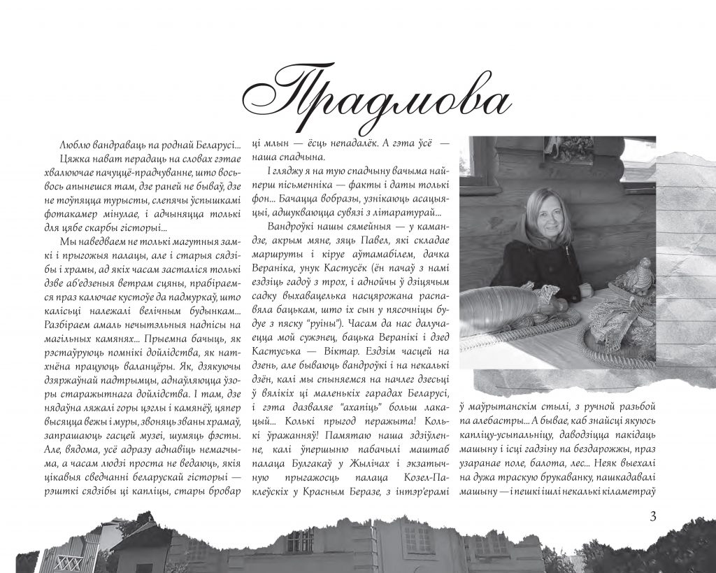 Разам з аўтаркай і ейнай сямейнай камандай чытачы адправяцца не толькі да магутных замкаў і прыгожых палацаў, але і да старых сядзібаў і храмаў, ад якіх часам засталіся толькі дзве аб’едзеныя ветрам сцяны, прабяруцца праз калючае кустоўе да падмуркаў, што калісьці належалі велічным будынкам”, — расказваюць пра кнігу ў сацсетках “Акадэмкнігі”, дзе можна купіць навінку. Таксама кнігу можна замовіць анлайн.