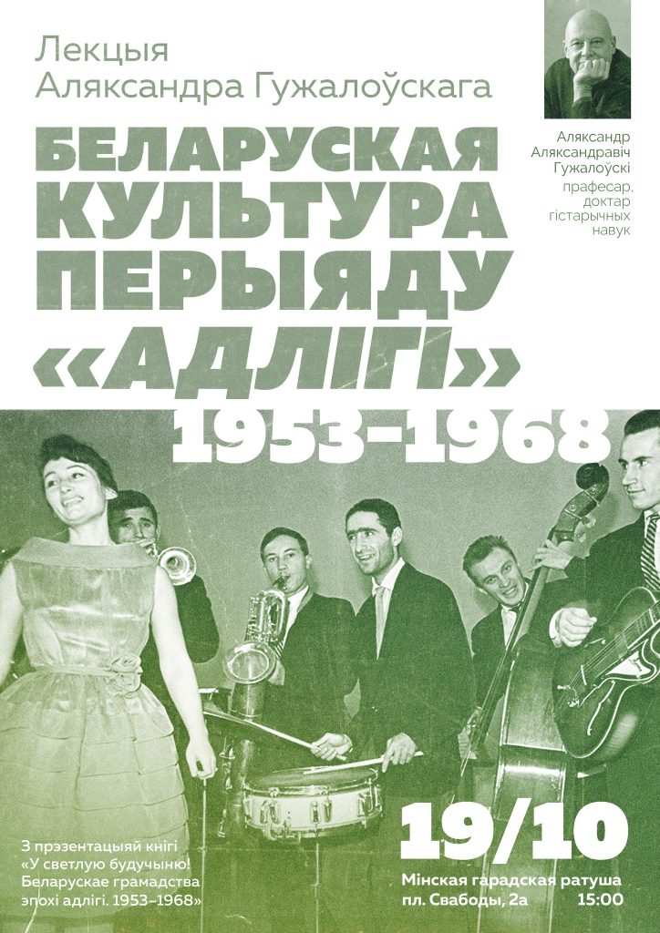 19 кастрычніка ў 15:00 Музей гісторыі горада Мінска запрашае ў Мінскую гарадскую ратушу на лекцыю-прэзентацыю кнігі прафесара, доктара гістарычных нувук Аляксандра Гужалоўскага “У светлую будучыню! Беларускае грамадства эпохі «адлігі» (1953—1968)”.