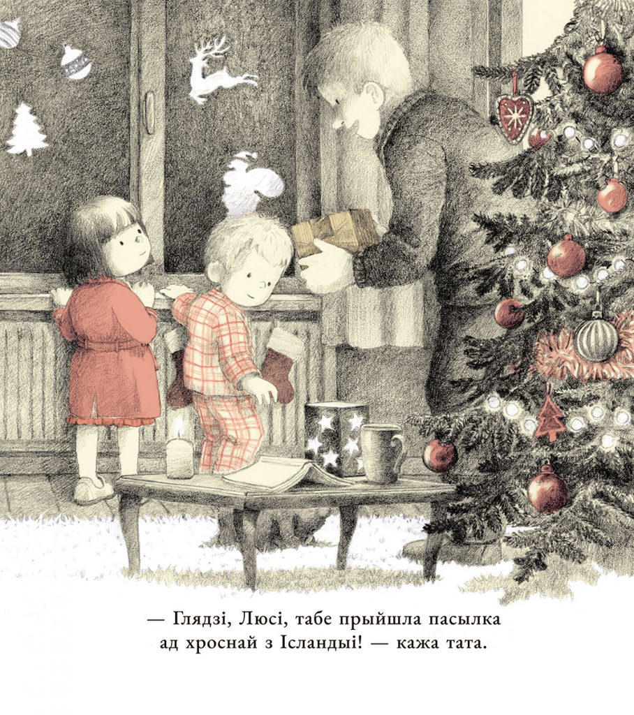 Усё змяняецца, калі дзеці атрымліваюць пасылку з Ісландыі. Унутры — снежны шар-цацка. Перад сном Люсі доўга разглядае яго і круціць у руках. А ноччу здараецца цуд: проста ў пакоі пачынаюць кружыцца сапраўдныя сняжынкі!”