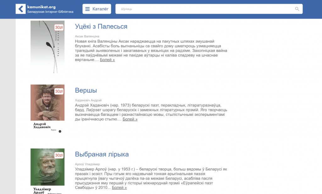Па-першае, Kamunikat — найбуйнейшая беларуская інтэрнэт-бібліятэка, якая налічвае ўжо больш за 55 тысяч розных беларускіх выданняў: кніг, аўдыякніг, часопісаў, газет і г. д. Фундацыя Kamunikat.org займаецца выданнем кніг з 2021 года, а сярод аўтараў ужо больш за 20 папулярных беларускіх пісьменнікаў. У інтэрнэт-кнігарні можна набыць шэраг папяровых выданняў: кнігі Уладзіміра Някляева, Віктара Марціновіча, Ганны Янкуты, ажно пяць кніг Уладзіміра Арлова, кнігу «(Не)расстраляныя» — пра беларускіх пісьменнікаў, расстраляных у 1937 годзе, ці «Кнігу могілак» — пра беларускія пахаванні ў свеце.