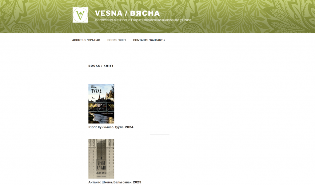 Vesna — незалежнае выдавецтва, задуманае як прадаўжальнік традыцыі беларускага кнігадрукавання ў Празе, якое выдае якасную арыгінальную і перакладную літаратуру. Гісторыя праекта пачалася 4 гады таму з выхаду рамана Мойшы Кульбака «Панядзелак», перакладзенага на беларускую мову адным з заснавальнікаў выдавецтва Сяргеем Шупам. Ёсць кнігі Альгерда Бахарэвіча, Юлі Цімафеевай, Джорджа Оруэла і іншых. Нядаўна з літоўскай мовы быў перакладзены раман Юргіса Кунчынаса «Туўла».