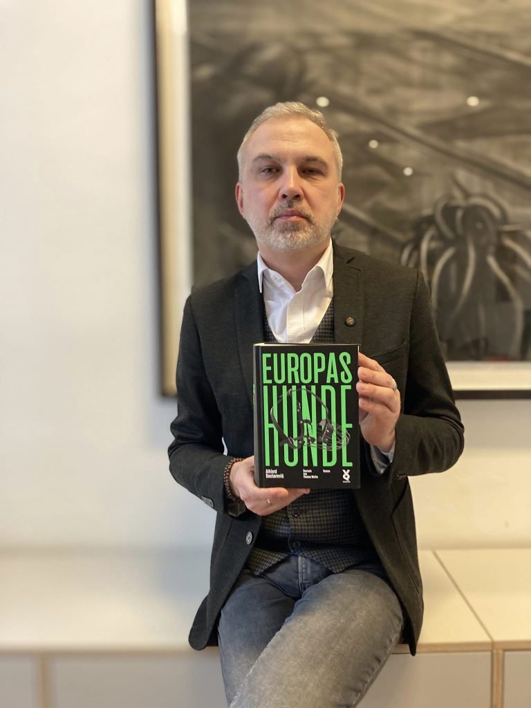 Раман Альгерда Бахарэвіча “Сабакі Эўропы”, які аўтар лічыць сваім галоўным раманам, выйшаў у нямецкім выдавецтве Voland&Quist. Пераклаў кнігу з беларускай мовы на нямецкую Томас Вайлер (назва гучыць як “Europas Hunde”), у даробку якога ўжо багата перакладзеных твораў беларускай літаратуры.