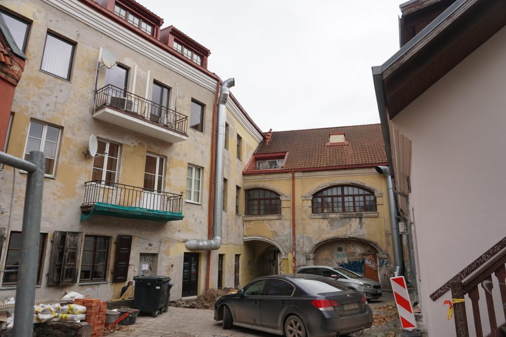 Патрапіць у дворык можна праз арку з вуліцы Шкляной, 4 (літ. — Stiklių g.).