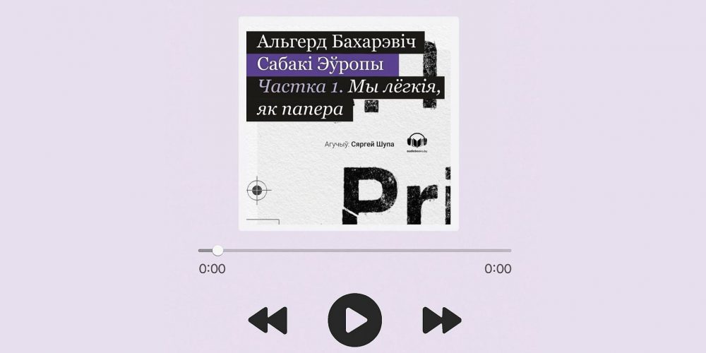 Ініцыятыва Audiobooks.by ператварыла першую частку рамана “Сабакі Эўропы” Альгерда Бахарэвіча “Мы лёгкія, як папера” ў аўдыякнігу і размясціла на пляцоўках, дзе кожны можа яе паслухаць. Твор агучыў рэдактар рамана Сяргей Шупа.