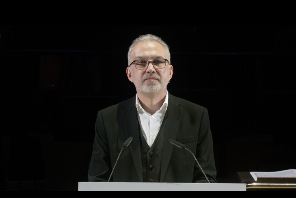 Я хацеў бы падзякаваць гораду Ляйпцыгу, Вольнай Дзяржаве Саксоніі, Ляйпцыгскай міжнароднай кніжнай выставе і Саюзу нямецкіх кнігагандляроў за прызнанне і за гонар атрымаць гэтую высокую ўзнагароду — Ляйпцыгскую прэмію эўрапейскага паразумення.