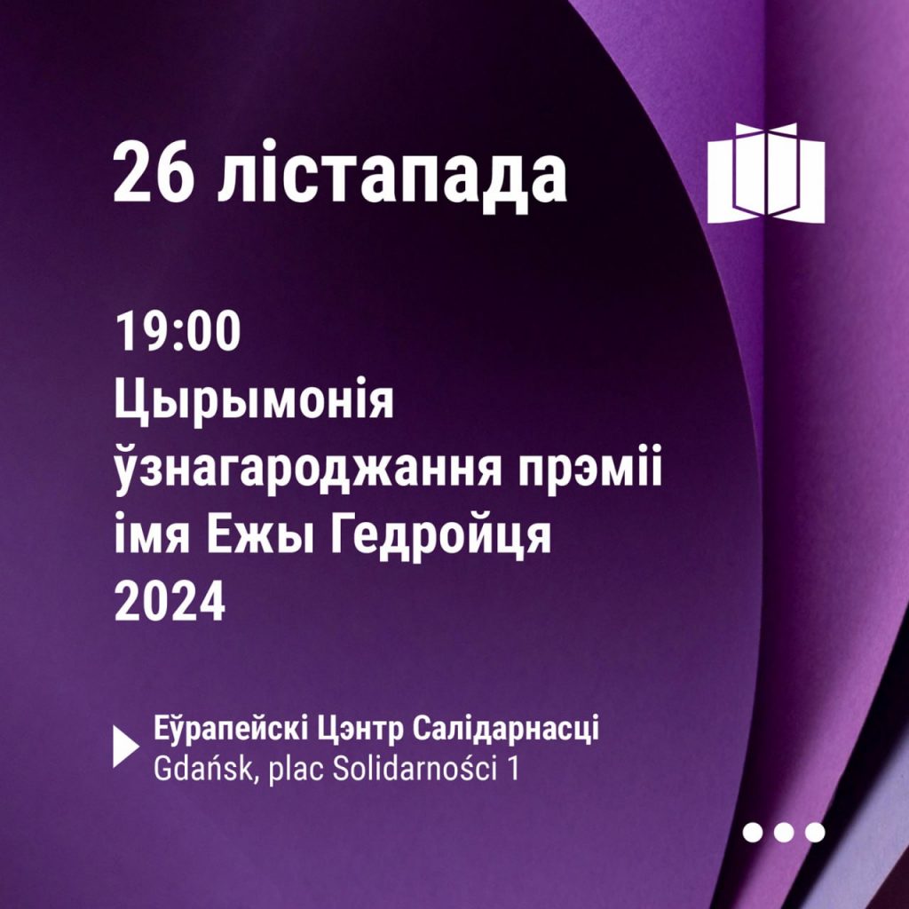 Цырымонія ўручэння прэміі імя Ежы Гедройця пройдзе 26 лістапада ў Гданьску (Польшча). Сёлета журы трынаццаты раз вызначыць тры найлепшыя празаічныя кнігі і галоўнага лаўрэата. Апроч таго 25 і 26 лістапада ў Гданьску пройдзе шэраг спадарожных мерапрыемстваў, звязаных з літаратурай.