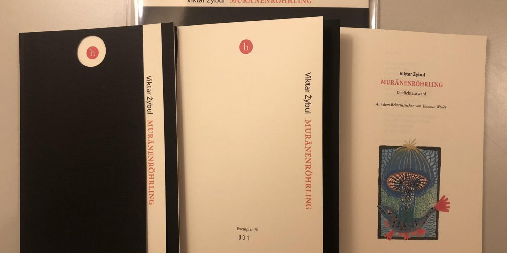 У выдавецтве hochroth Minsk выйшла новая кніга паэзіі Віктара Жыбуля ў перакладзе на нямецкую мову. Зборнік называецца “Muränenröhrling”, што па-беларуску можна перадаць як “Мурэна-грыб”.