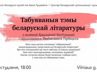 16 студзеня ў віленскім Цэнтры беларускай культуры пройдзе сустрэча з паэткай Крысцінай Бандурынай і пісьменнікам Уладзіславам Гарбацкім з назвай “Табуяваныя тэмы беларускай літаратуры”. Слухачы даведаюцца, якія тэмы дасюль застаюцца “забароненымі”, непрагаворанымі, нязручнымі для беларускай літаратуры, пра што пісьменьнікі і пісьменніцы часта маўчаць ці пішуць крадком, якія кнігі насцярожваюць, палохаюць выдаўцоў. […]