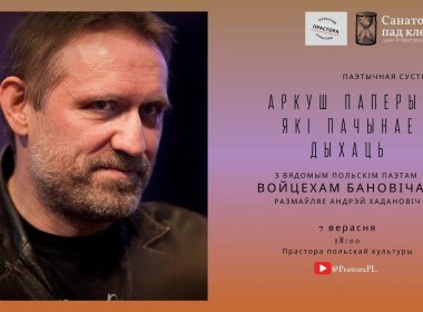 7 верасня ў 18:00BY / 17:00PL у межах цыклу “Санаторый пад клепсідрай” адбудзецца анлайн-паказ творчага вечар кракаўскага паэта Войцеха Бановіча. Мадэратарам сустрэчы і перакладчыкам паэзіі Бановіча на беларускую мову выступіць паэт Андрэй Хадановіч. Войцех Бановіч у 2020 годзе быў госцем менскага паэтычнага фестывалю “Вершы на асфальце” імя Міхася Стральцова, таму […]